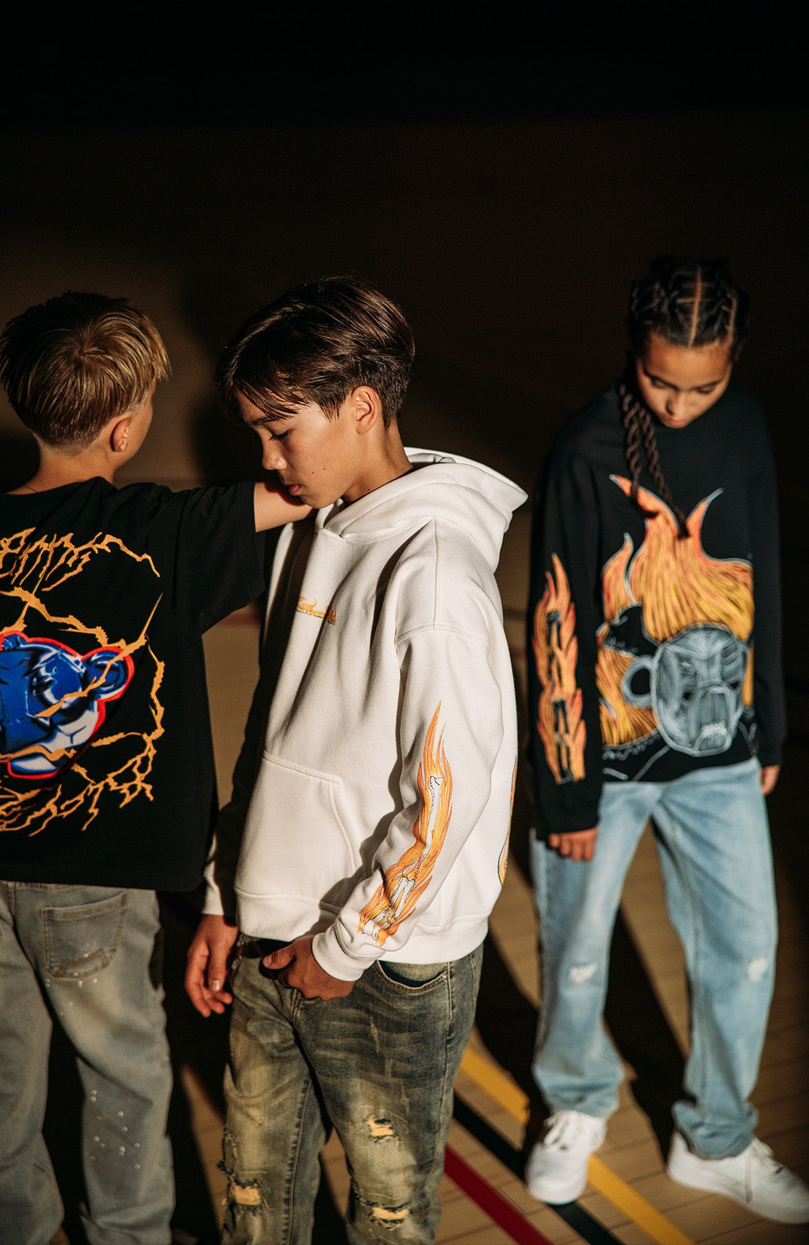 Het spel staat in brand en bruist van de energieBlack Bananas Kids presenteert Team Blaze vs Team Electro een collectie die vuur en bliksem brengt in je stijlspel. Twee hoodies, een longsleeve en een t-shirt. Elk stuk is gevuld met gedurfde grafische prints, vlammende vlammen voor de hittezoekers en elektriserende lijnen voor de powerplayers. Breng de hitte met Team Blaze of sla snel toe met Team Electro.